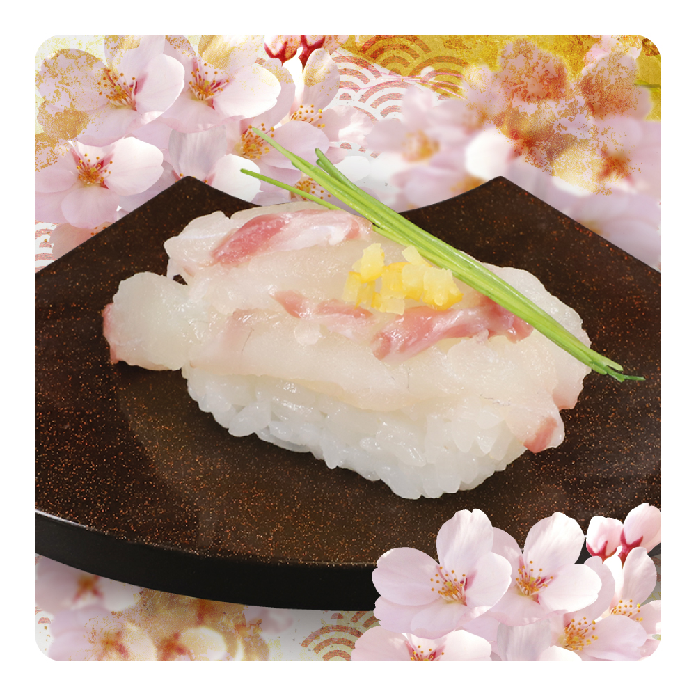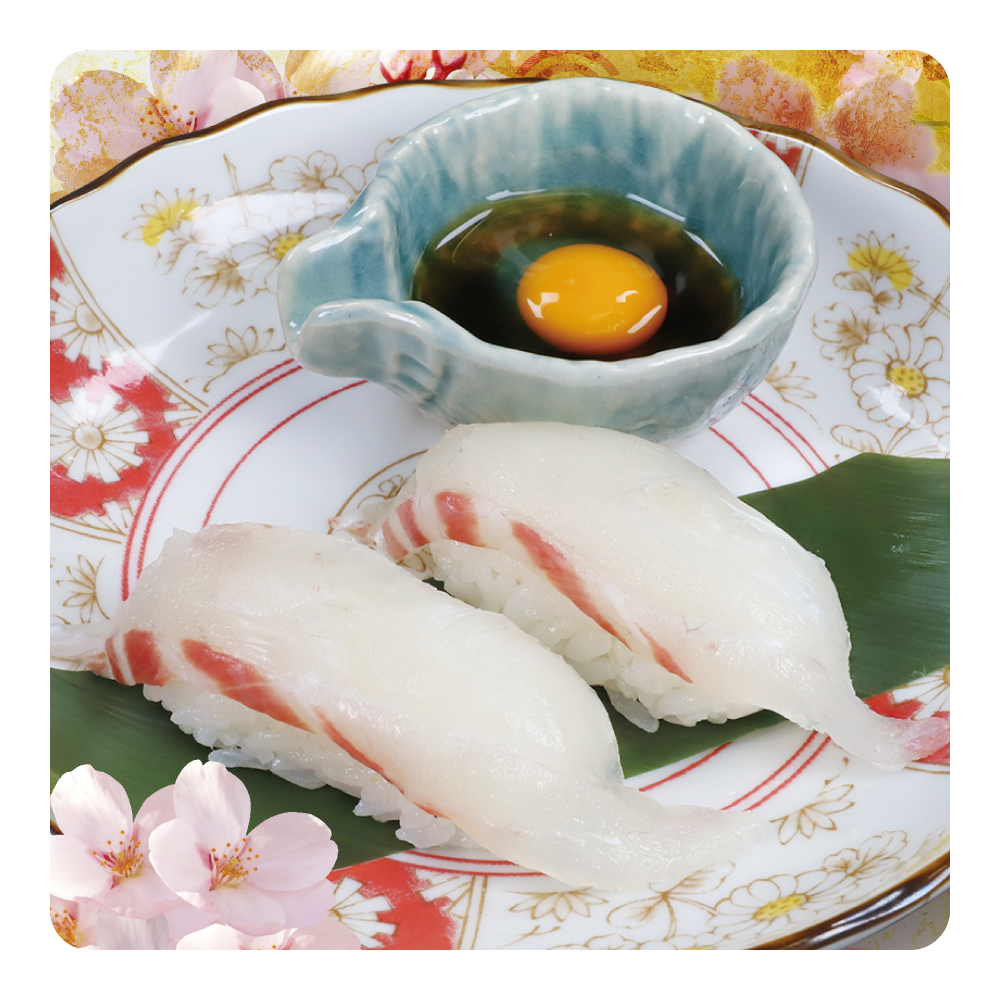 ![]() 瀬戸の桜鯛 【1貫】190円(税込:209円) 【2貫】380円(税込:418円) |