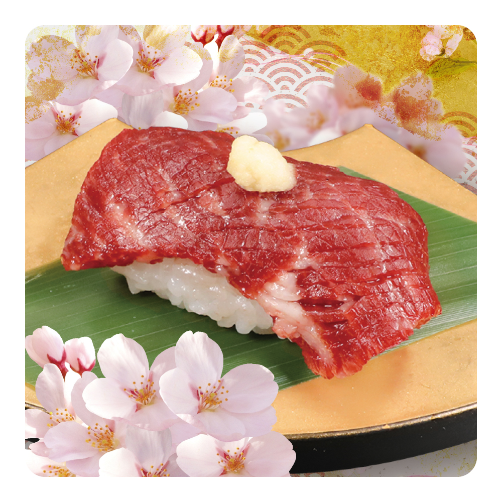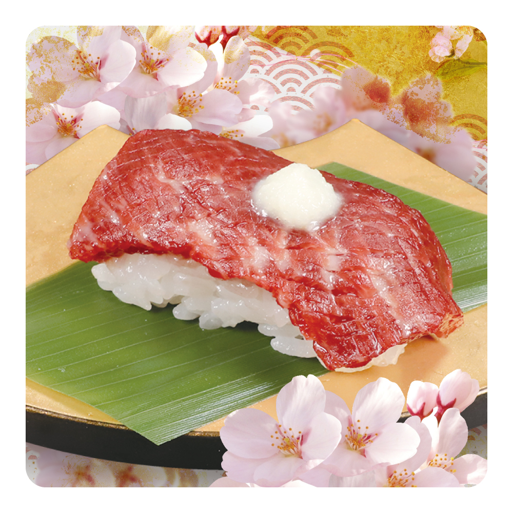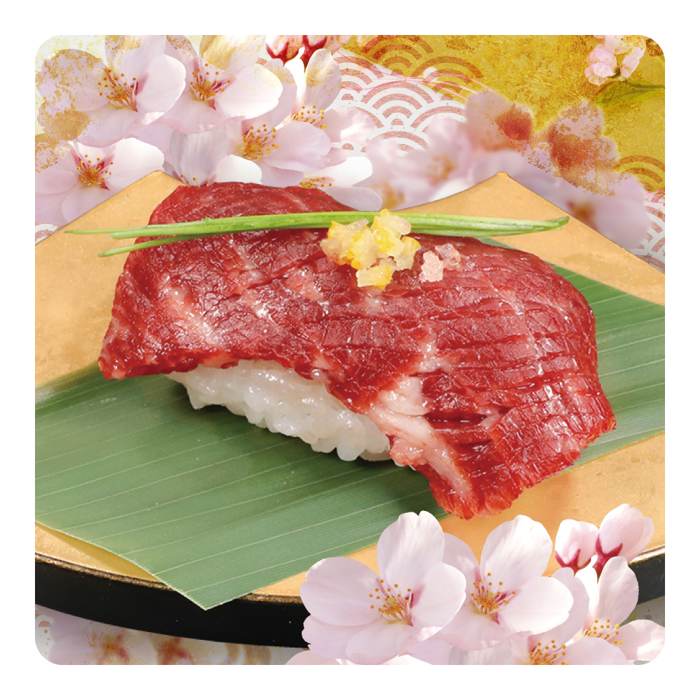 ![]() 桜肉握り 山わさび 【1貫】480円(税込:528円) |
