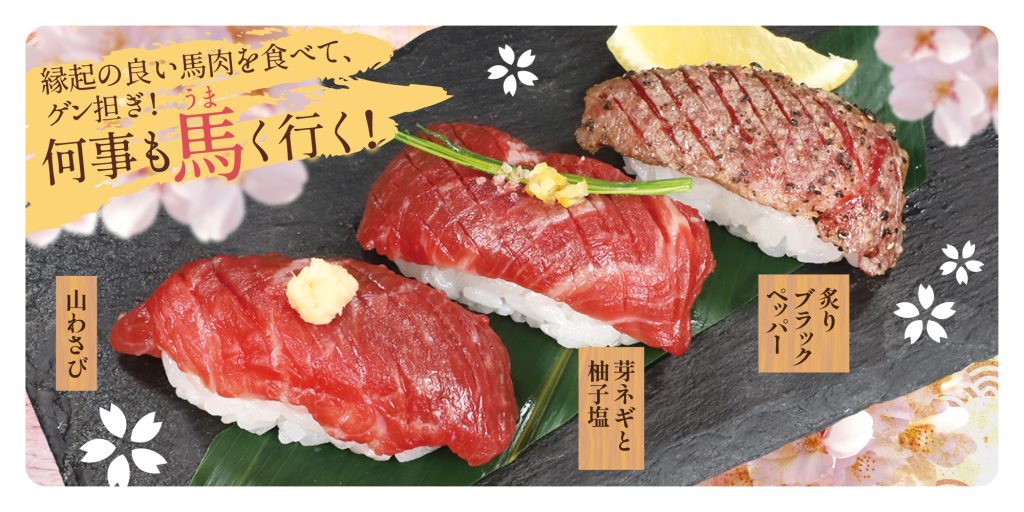 ![]() 桜肉握り 炙り柚子胡椒 【1貫】480円(税込:528円) |