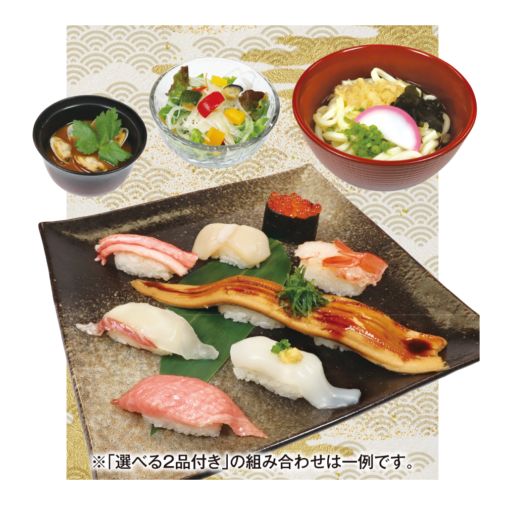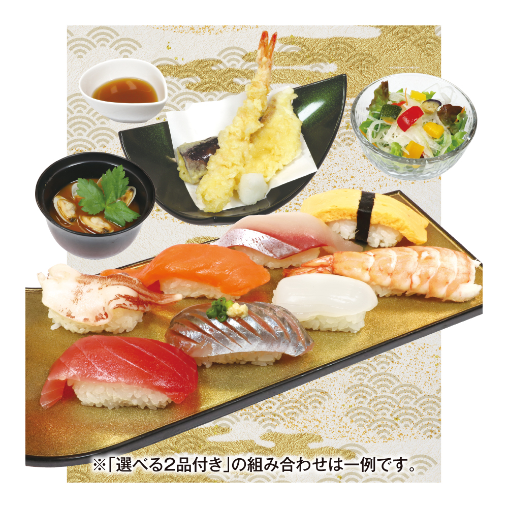 ※仕入れ状況により、「選べる2品付き」の商品内容は変更となる場合がございます。予め、ご了承ください。